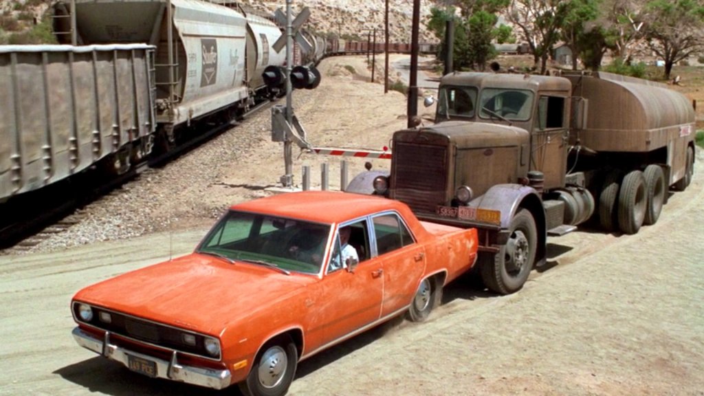 The film follows David Mann, played by the late great Dennis Weaver, a man down on his luck with his wife and with a job so boring we don’t even find out what it is. He’s on a commute across California for some never-explained job reason when he makes a seemingly small decision to overtake a rusty old truck out on the desert highway. The truck blasts his horn back at Mann and overtakes his small, red Plymouth valiant. Mann, pissed off and full of road rage, overtakes the truck again and leaves him behind in a trail of dust. After a stop at a gas station, the truck reappears and begins to tailgate Mann and, after overtaking him, almost pushes Mann into the path of an oncoming car. From then on out, it becomes a murderous game of cat and mouse between the big, rusted Peterbilt truck and Mann’s small Plymouth.