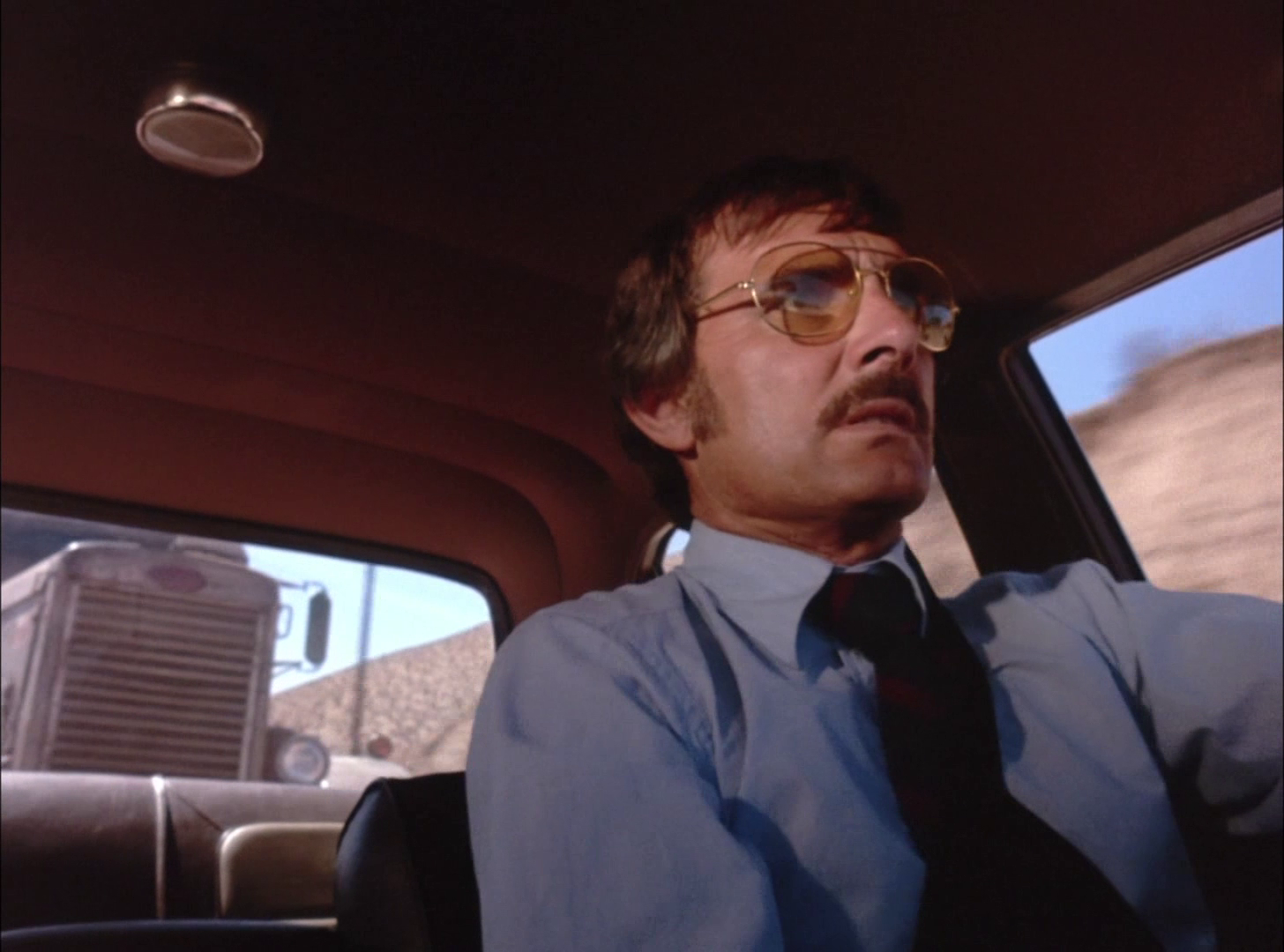 Weaver is fantastic in the starring role, carrying the whole film on his shoulders. He plays the every man extraordinarily well; you feel for him and relate to him but you never pity him. His triumphant slaying of the truck at the end of the film is a wonderful moment and you share in his celebration. He also does sweaty, nervous anxiety really well, which was why Spielberg hired him after seeing his performance as the anxious Night Manager in Orson Welles’ Touch of Evil. Weaver does a lot of the driving and stunts in the film too, which really help sell it. For the majority of the film it is just Mann as well, acting against the truck rather than the driver, who we never see. Mann’s plight is accompanied by a voice over, which I really liked. A lot of the dialogue is lifted pretty closely from the original Matheson short story. Weaver acts out Mann’s anxiety physically but the voice over lets us in to his world while never having to shoehorn in an unnecessary conversation scene between Mann and someone. Mann is entirely alone in this desert world, full of greasy hicks and weird roadside freaks (the snake lady is my favourite) and may as well be on a different planet to the comfortable Californian suberb we see him leave at the beginning of the film.